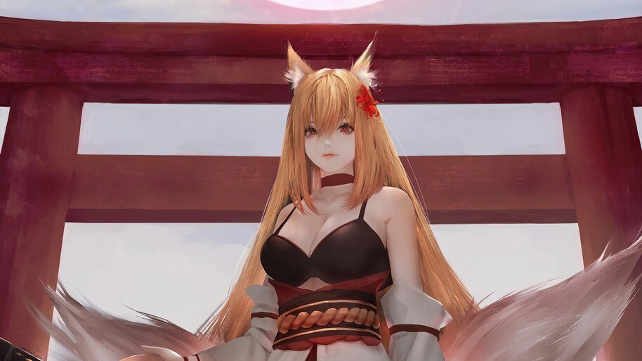 Hd Wallpaper Anime Anime Girls Animal Ears Blonde Tail Fox